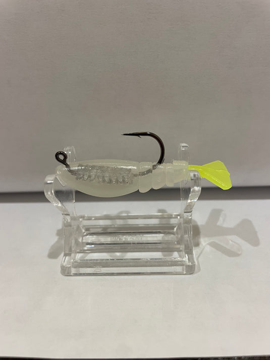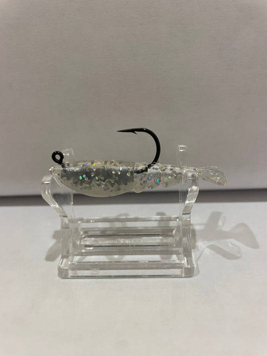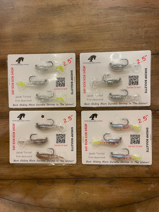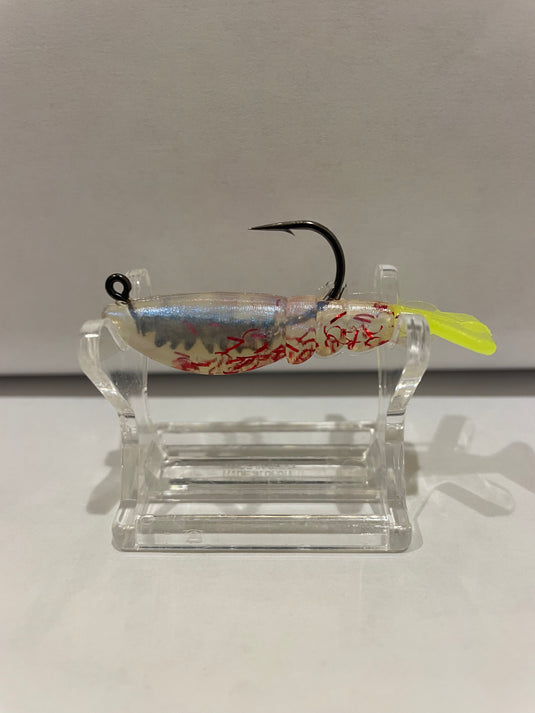 The Baby Boom Boom shrimp is a plastic bait that imitates shrimp swimming. The bait is formed around a death grip weighted jig head and performs ...